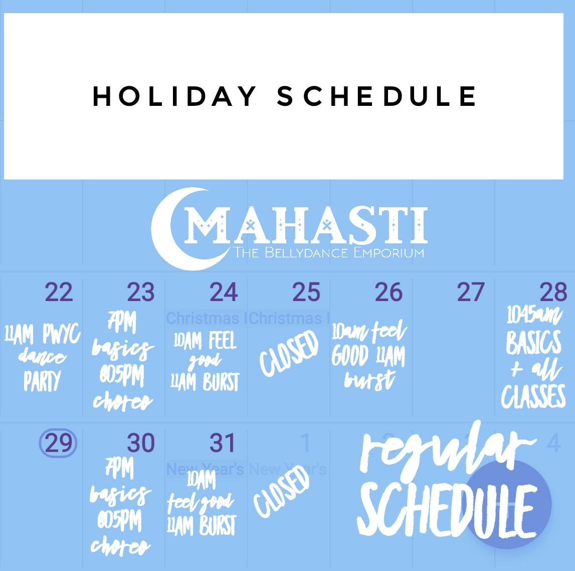 No classes Wed 12/25 or 1/1.